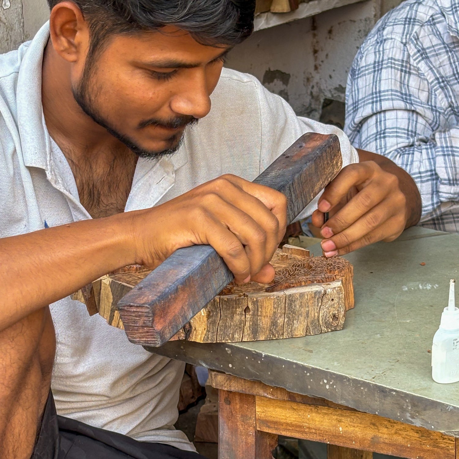 Nous avons choisi dès le départ des ateliers de taille humaine à Jaipur, où les conditions de travail respectent pleinement les rythmes et les savoir-faire locaux.