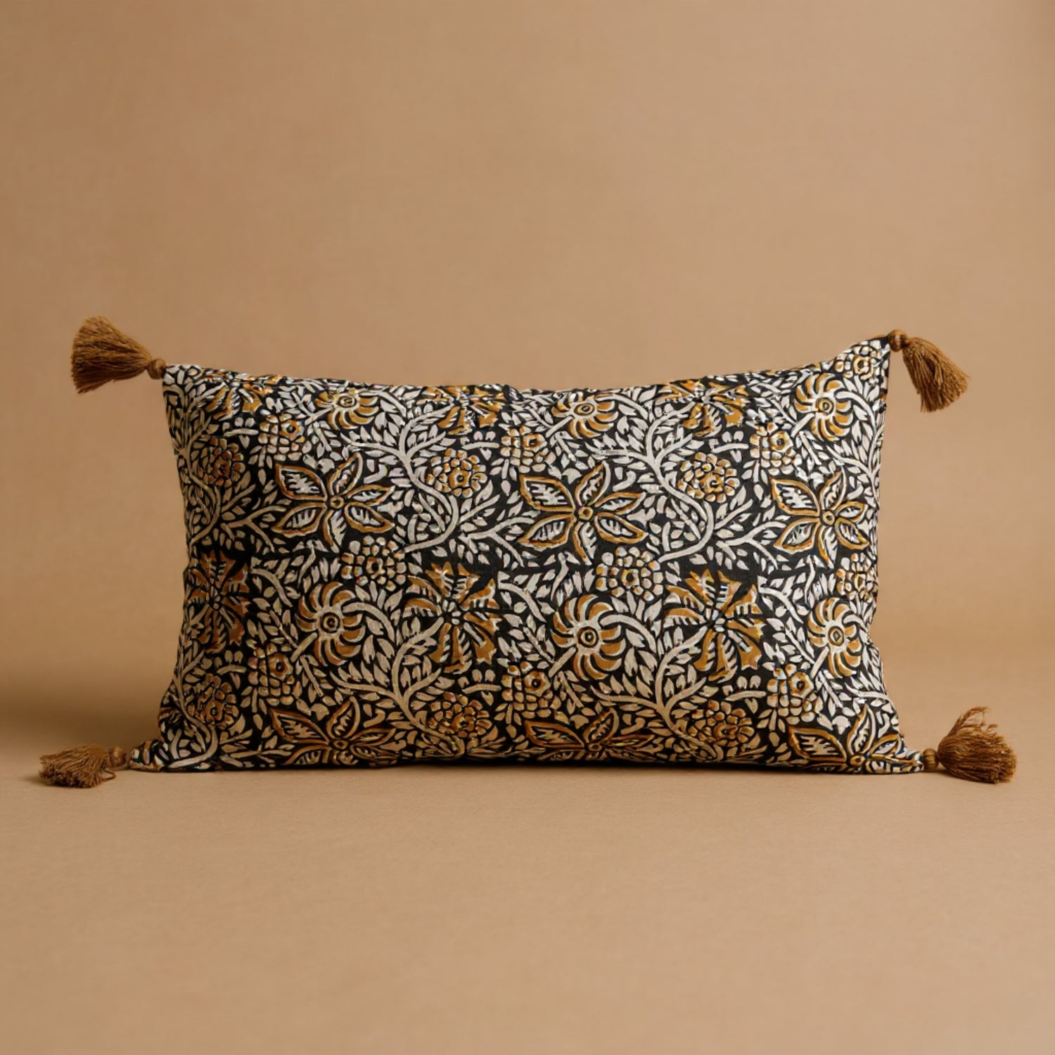Leela est une housse de coussin en coton, imprimée délicatement à la main. Une touche douce et poétique pour votre intérieur.
