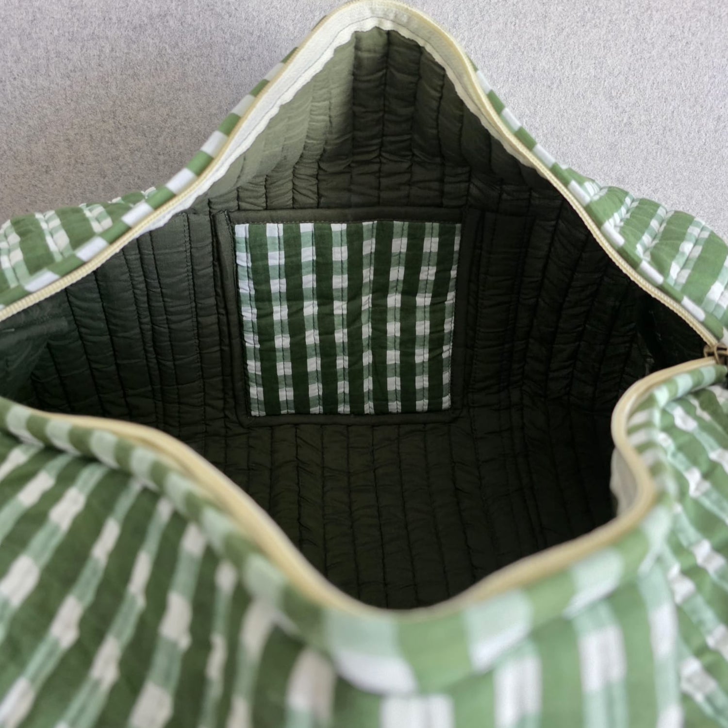 Panna est un sac week-end en coton, imprimé à la main selon la technique du blockprint. Une pièce souple et généreuse, pensée pour accompagner vos voyages.