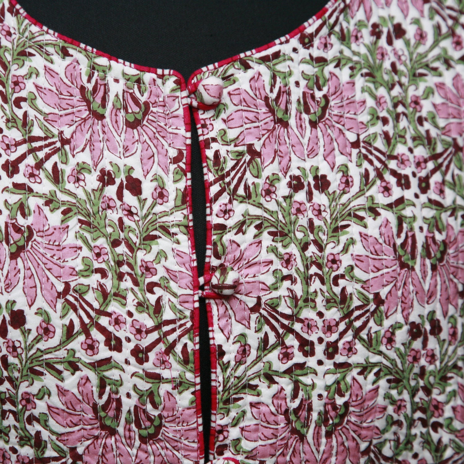 Imprimée à la main en Inde selon la technique du blockprint, elle révèle la singularité d’un motif inspiré par les gestes artisanaux.