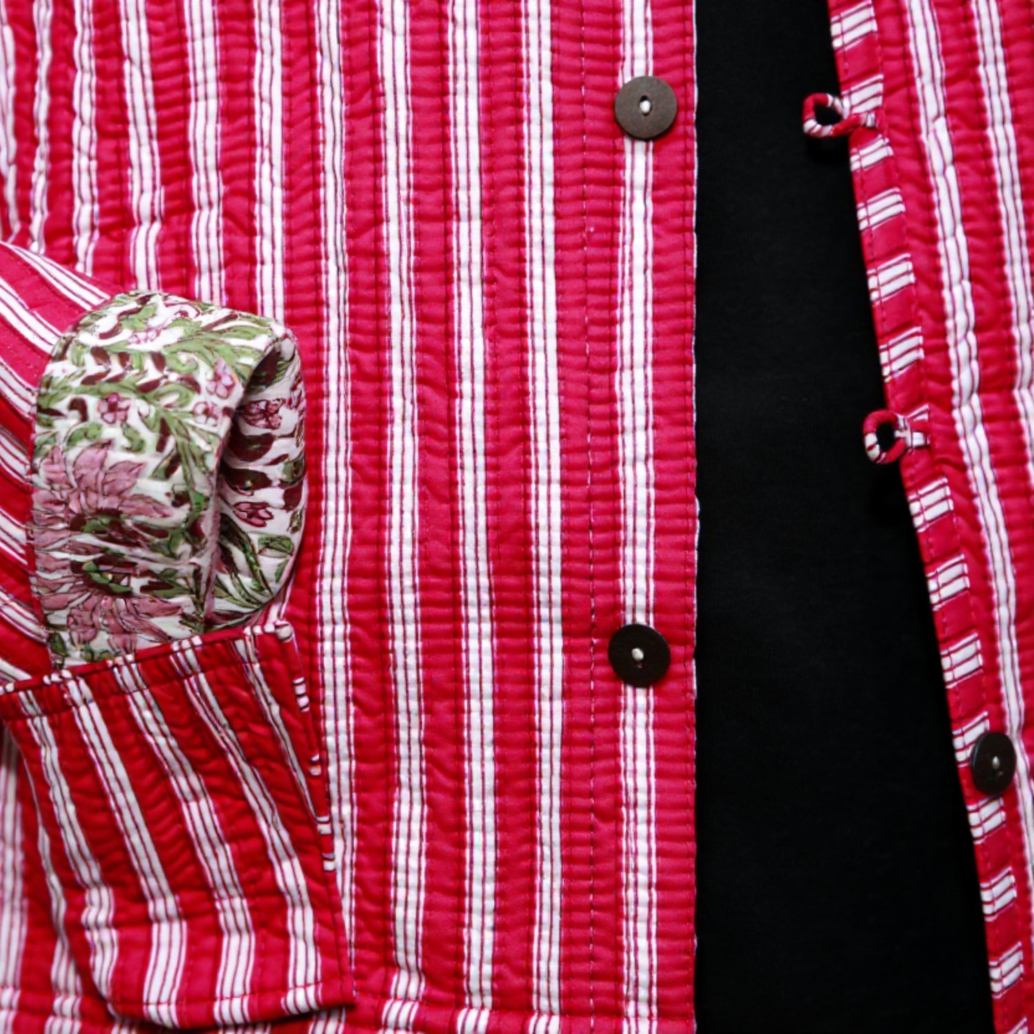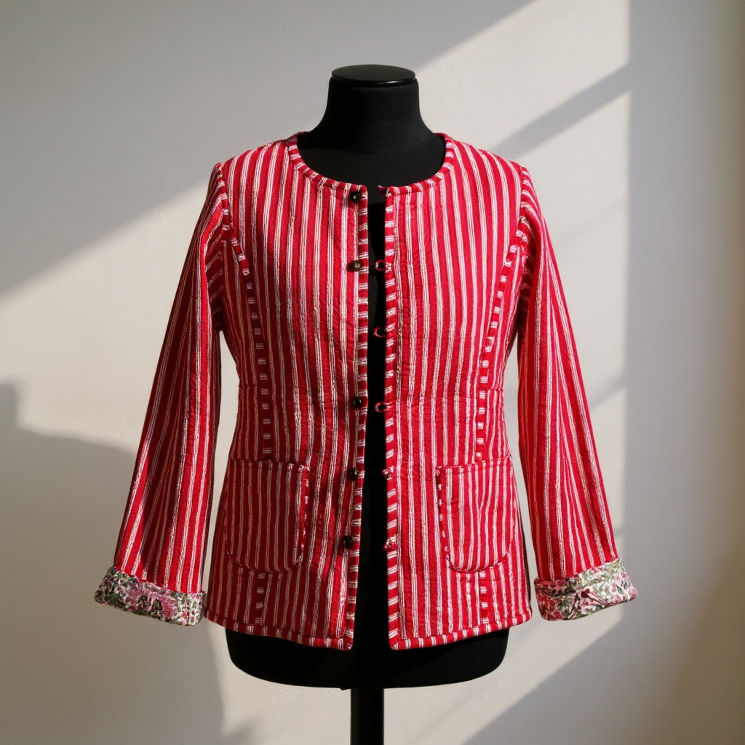 Découvrez la veste Anaya, notre pièce iconique réversible à col rond.