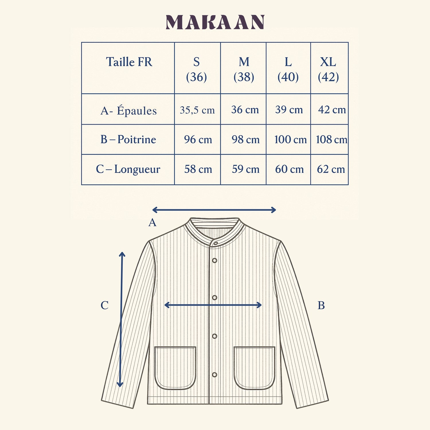 Nos coupes sont pensées pour accompagner le mouvement, avec confort et aisance. Si vous hésitez entre deux tailles, nous vous recommandons de choisir celle du dessus.