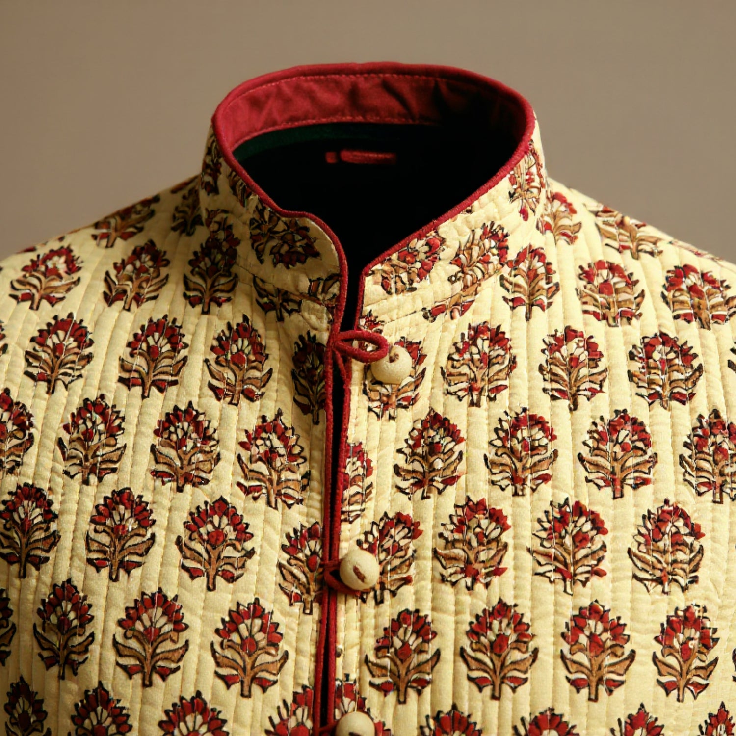 Imprimée à la main en Inde selon la technique du blockprint, elle révèle la singularité d’un motif inspiré par les gestes artisanaux.
